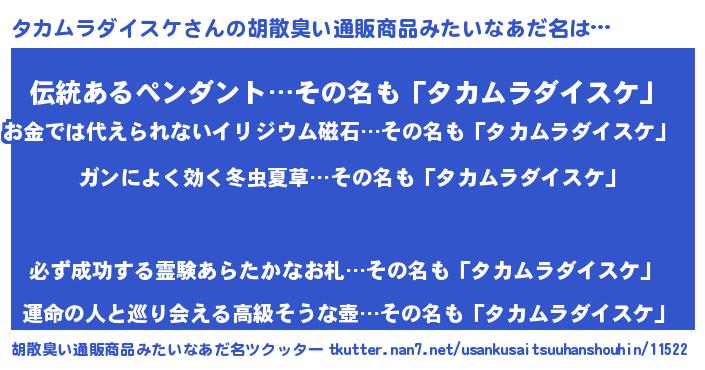 | 意味不明あだ名 | 『自称タカムラダイスケ』 |
