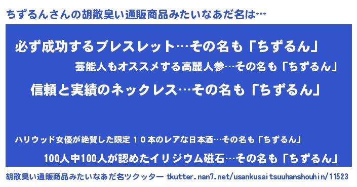 | 意味不明あだ名 | 『とにかく怪しいちずるん』 |