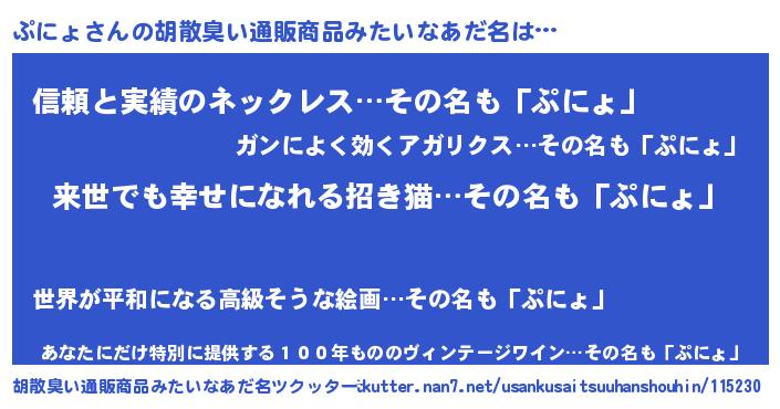 | 意味不明あだ名 | 『永久保存ぷにょ』『自称ぷにょ』 |
