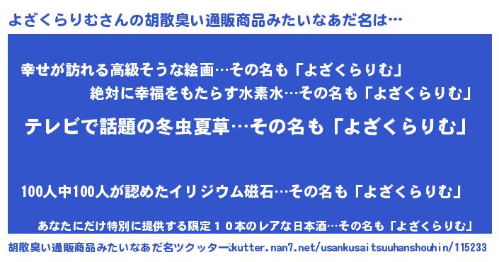 | 意味不明あだ名 | 『自称よざくらりむ』 |