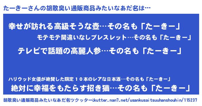 | 意味不明あだ名 | 『自称たーきー』『たーきーフォーエバー』 |