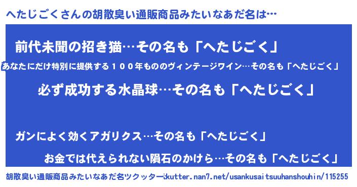 | ヒーロー風カッコイイあだ名 | 『スーパーヘタジゴク』『ネオヘタジゴク』 |