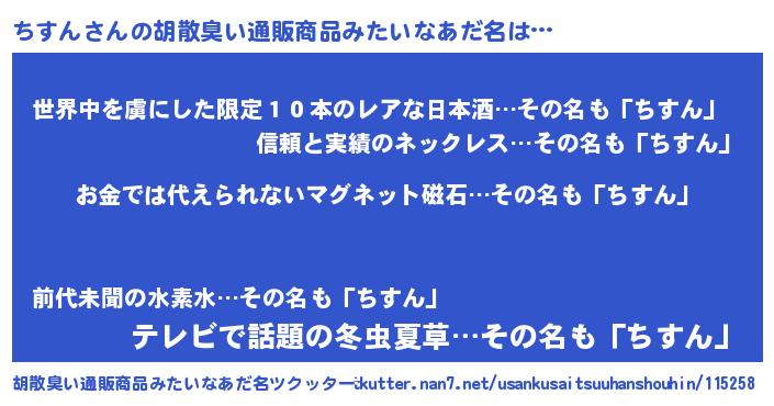 | ヘコむあだ名 | 『ちすを』『ちすん(震え声)』『豆乳』 |