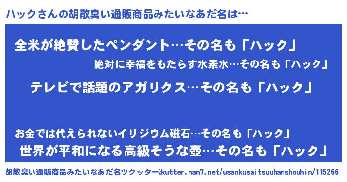 | 意味不明あだ名 | 『自称ハック』『とにかく怪しいハック』 |