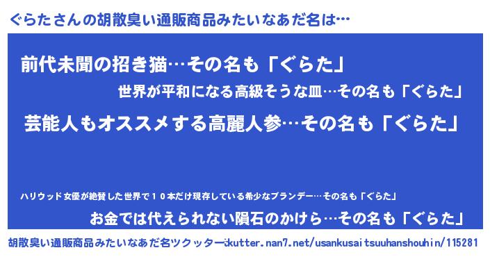 | ヘコむあだ名 | 『ぐらた(笑)』『レバニラ』 |