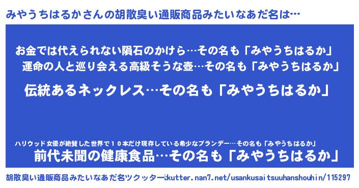 | 意味不明あだ名 | 『とにかく怪しいみやうちはるか』 |