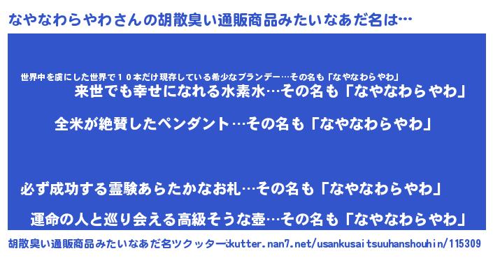 | 欧米人風あだ名 | 『ウサインなやなわらやわ』 |