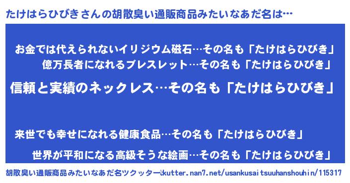 | 意味不明あだ名 | 『とにかく怪しいたけはらひびき』 |