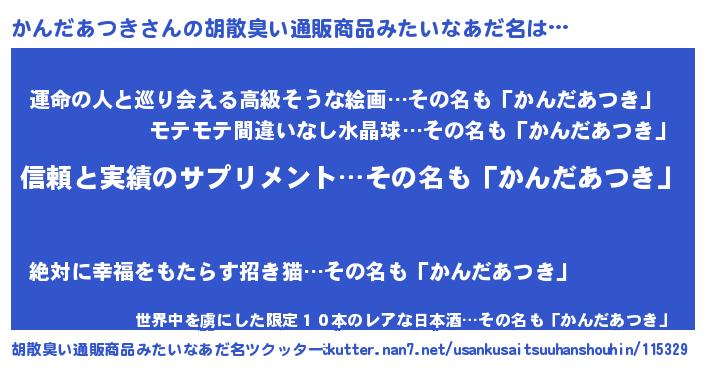 | 意味不明あだ名 | 『とにかく怪しいかんだあつき』 |