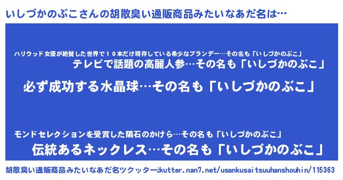 | 男性向けラノベタイトル風あだ名 | 『いしづかのぶこの憂鬱』 |