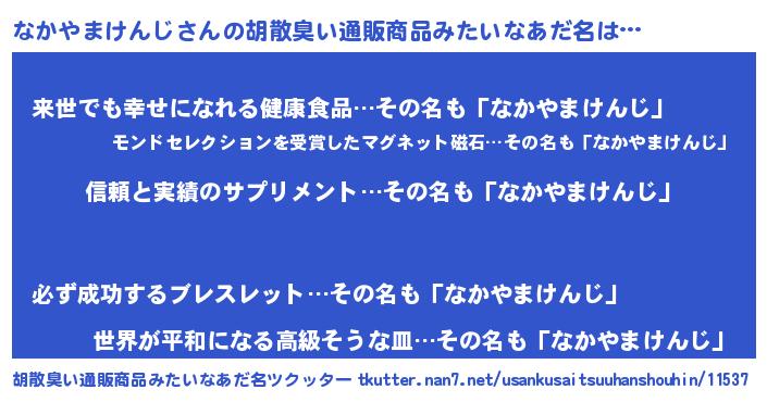 | ヘコむあだ名 | 『なかお』『なかやまけんじ(笑)』 |