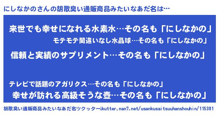 | ヘコむあだ名 | 『にしお』『にしなかの(震え声)』 |