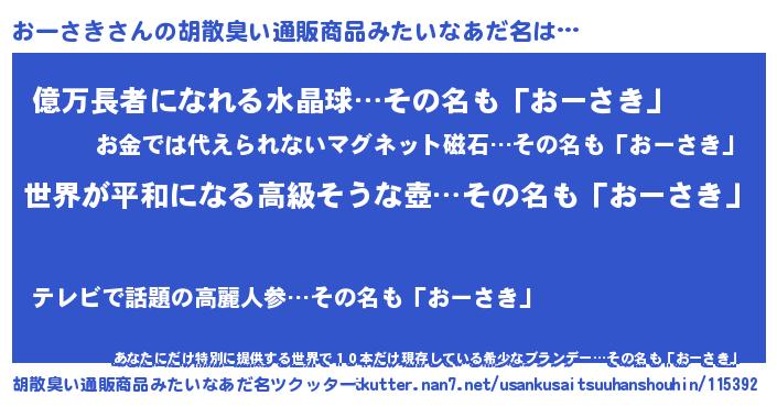| 意味不明あだ名 | 『おーさきフォーエバー』 |