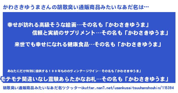 | 意味不明あだ名 | 『永久保存かわさきゆうま』 |