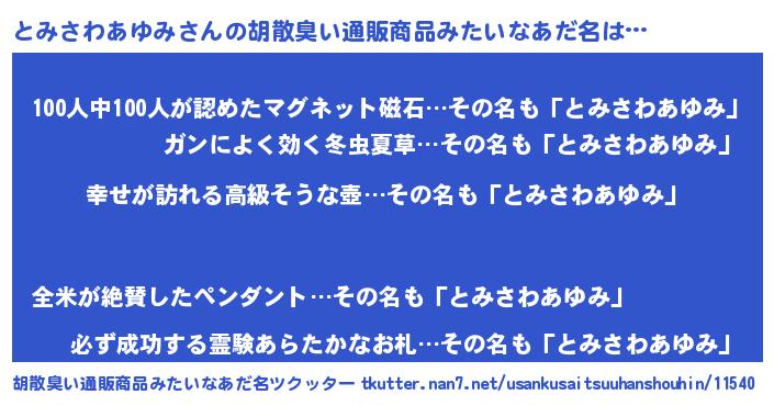 | 意味不明あだ名 | 『とみさわあゆみフォーエバー』 |