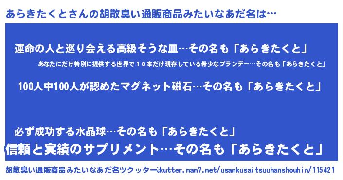 | 欧米人風あだ名 | 『アンジェラ・あらきたくと』 |