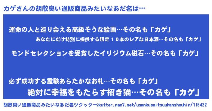 | ヘコむあだ名 | 『レバニラ』『カゲ(笑)』『カゲ太郎』 |