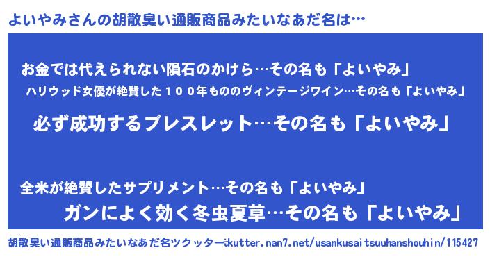 | 意味不明あだ名 | 『ペロリンよいやみ』『自称よいやみ』 |