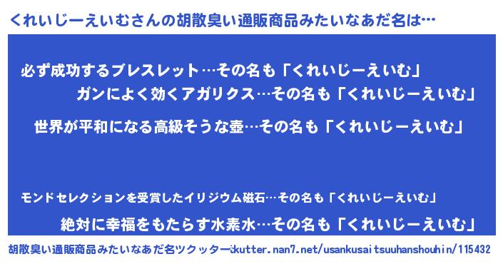 | 意味不明あだ名 | 『くれいじーえいむフォーエバー』 |