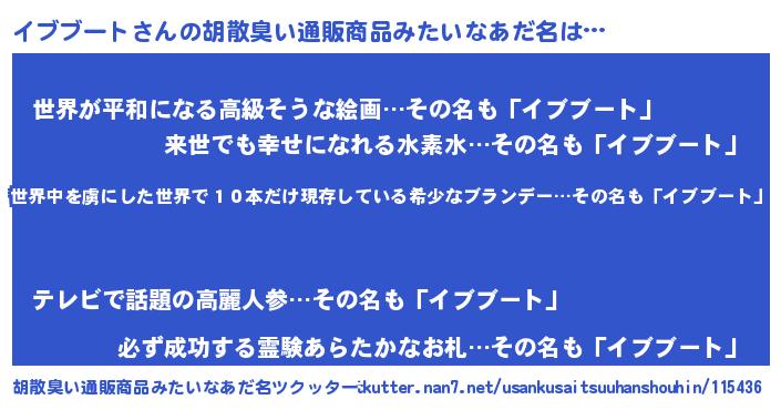 | 意味不明あだ名 | 『住所不定無職イブブート(81歳)』 |
