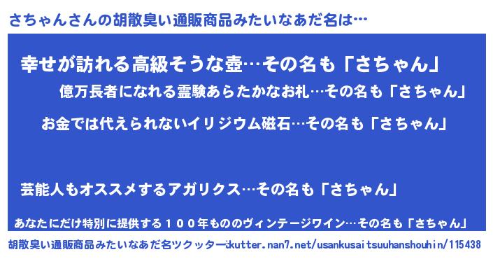 | ヒーロー風カッコイイあだ名 | 『慈愛の使者さちゃん』『仮面サチダー』 |
