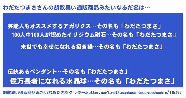 | 肩書あだ名 | 『わだたつまさ先生』『わだたつまさ総統』 |