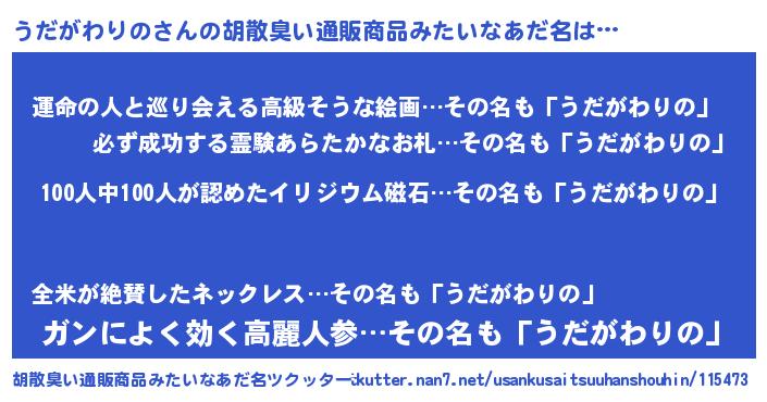 | ヒーロー風カッコイイあだ名 | 『正義の使者うだがわりの』 |