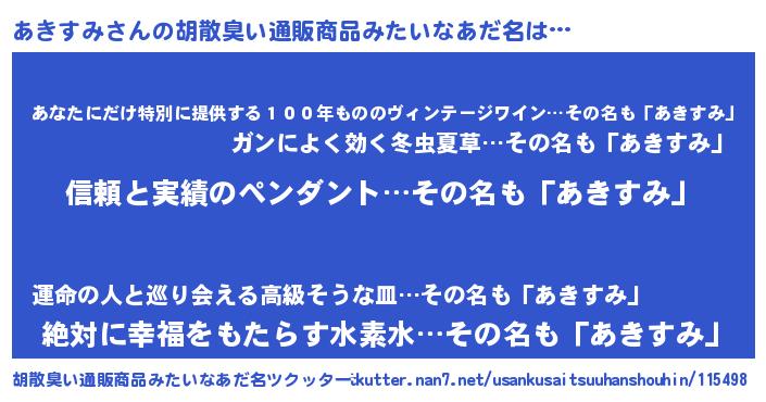 | 意味不明あだ名 | 『エリンギ科あきすみ属』『自称あきすみ』 |
