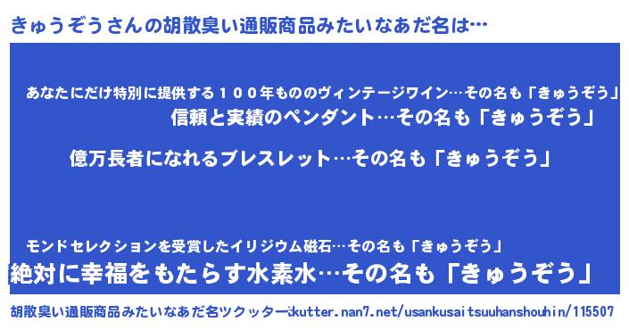| ヘコむあだ名 | 『きゅにー』『きゅうぞう(遠い目)』 |