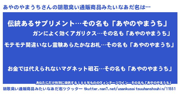 | 自動車の名前っぽいあだ名 | 『アヤティマ』『アルトヤパン』 |