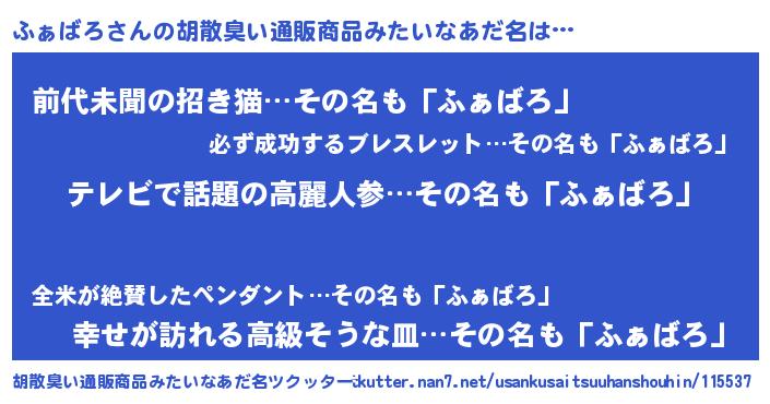 | ヘコむあだ名 | 『ふぁばろ(小並感)』『酢こんぶ』 |