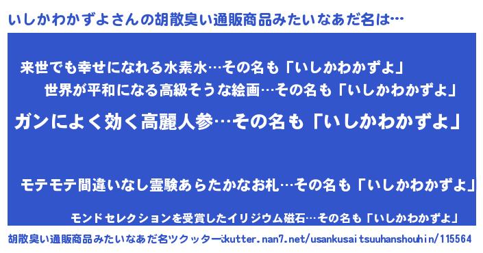 | 意味不明あだ名 | 『自称いしかわかずよ』 |