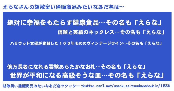 | ヒーロー風カッコイイあだ名 | 『仮面エラダー』『ネオエラナ』 |