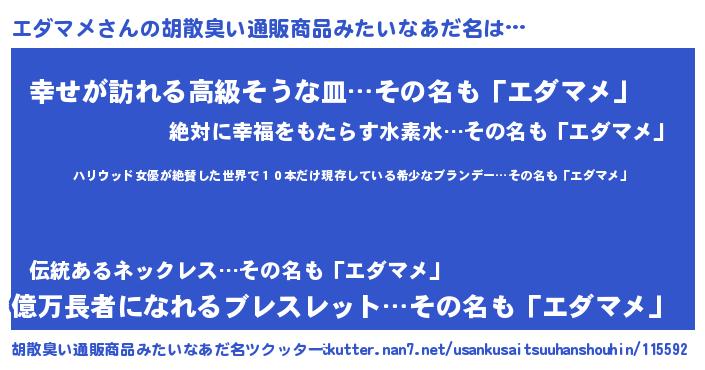 | 恥ずかしいあだ名 | 『エダっちょ』『プリティーエダマメ』 |