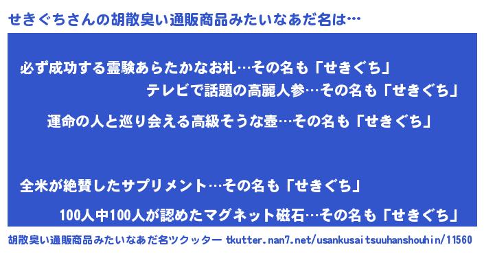 | 恥ずかしいあだ名 | 『せきっちょ』『プリティーせきぐち』 |
