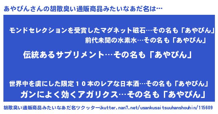 | 意味不明あだ名 | 『とにかく怪しいあやぴん』 |