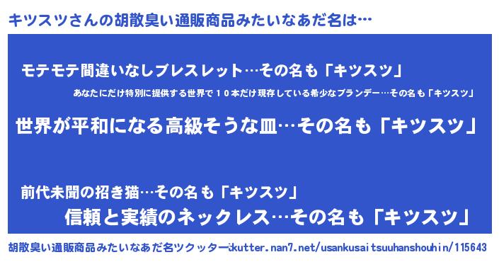 | 欧米人風あだ名 | 『キツスツクリステル』 |