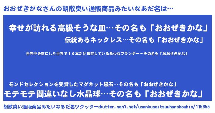 | 意味不明あだ名 | 『住所不定無職おおぜきかな(79歳)』 |