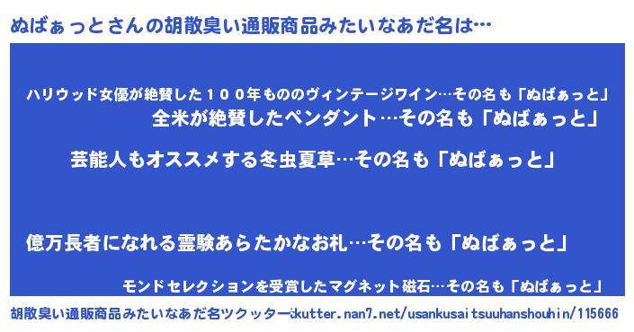 | 意味不明あだ名 | 『自称ぬばぁっと』 |