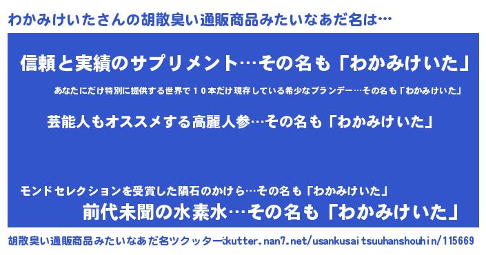 | 欧米人風あだ名 | 『ケンブリッジわかみけいた』 |