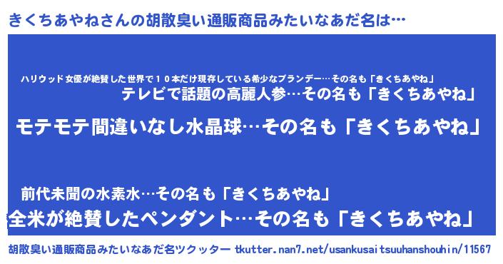 | ヘコむあだ名 | 『きくにゅー』『きくお』『つくし』 |