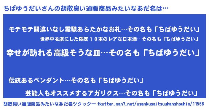 | 恥ずかしいあだ名 | 『ちばっちょ』『プリティーちばゆうだい』 |