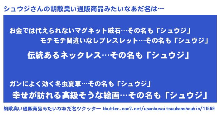 | ヘコむあだ名 | 『シュ太郎』『なまこ酢』 |
