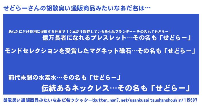 | ヒーロー風カッコイイあだ名 | 『天空の使者せどらー』『仮面セドダー』 |