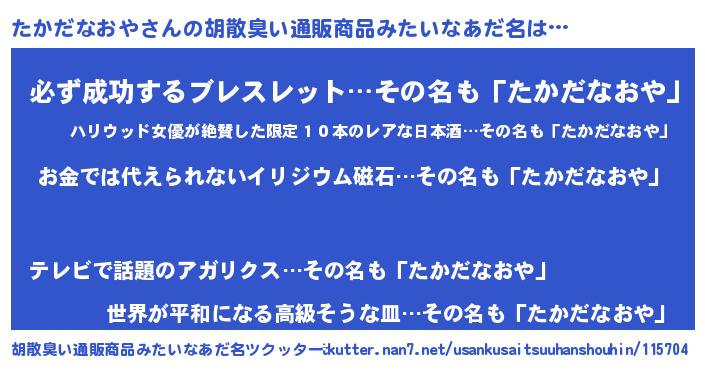 | 料理風あだ名 | 『たかだなおやごはん』 |