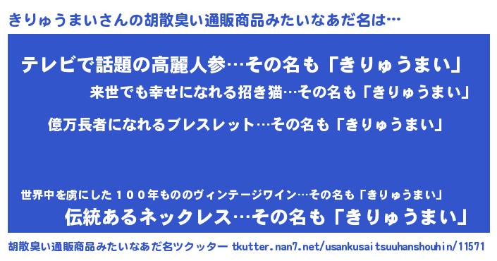 | 肩書あだ名 | 『きりゅうまい社長』『きりゅうまい閣下』 |