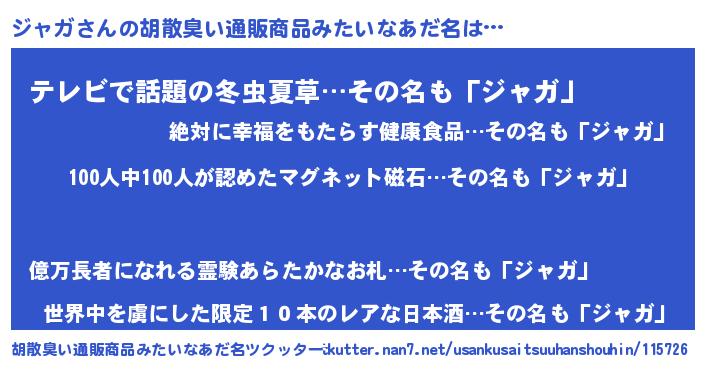 ジャガさんの胡散臭い通販商品みたいなあだ名をツクッター!