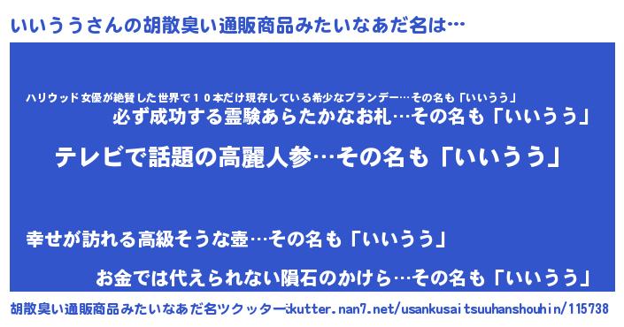 | 恥ずかしいあだ名 | 『イイウウデラックス』『いいっちょ』 |