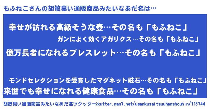 | ヘコむあだ名 | 『もふにー』『牛乳』『もふねこ(笑)』 |