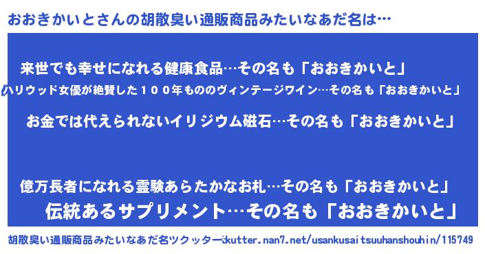 | ヘコむあだ名 | 『おおきかいと(爆)』『おお太郎』 |